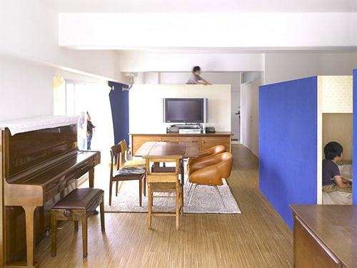 Trong điều kiện căn hộ chỉ rộng 70m2, các kiến trúc sư cảm thấy không thể phân chia đủ không gian sinh hoạt chung và các phòng riêng lẻ cho gia đình gồm vợ chồng và bốn đứa con nhỏ.