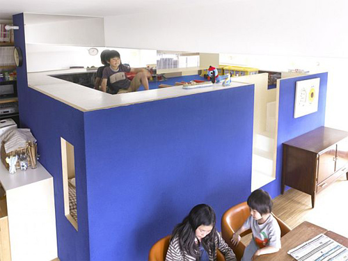 Thiết kế liên thông của căn hộ cho phép bố mẹ biết được các con của mình đang ở đâu và làm gì vào bất kỳ thời gian nào. Việc xóa bỏ những bức tường giúp cho không gian rộng lớn hơn nhưng sự riêng tư cũng bị hạn chế rất nhiều.