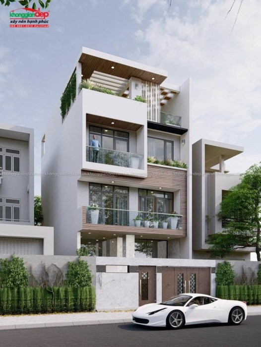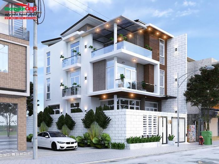 Mẫu 3D mặt tiền, phong cách thiết kế hiện đại, tiện dụng, nhẹ nhàng