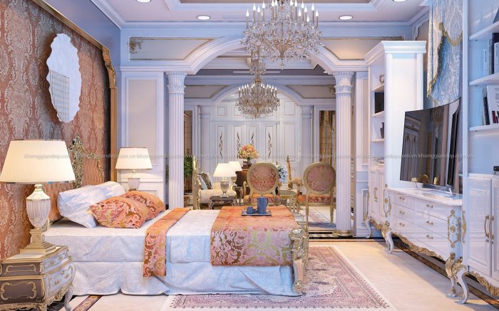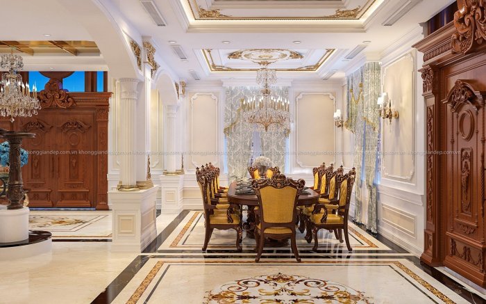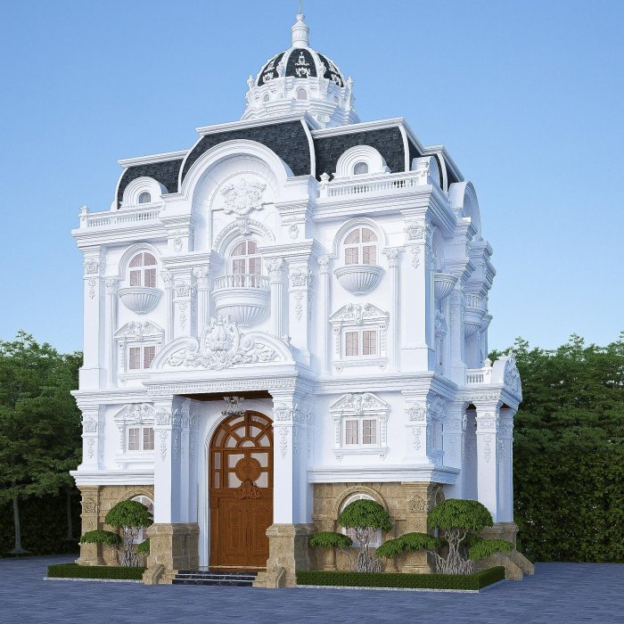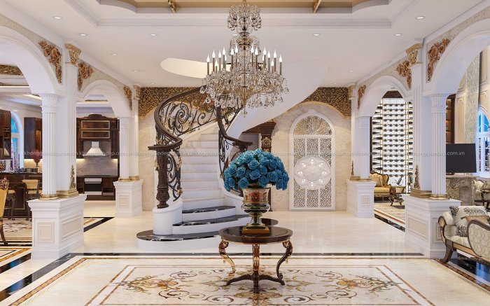 ♦ Nguy nga – Sang trọng – Lộng lẫy là những từ chính xác dùng để miêu tả căn biệt thự tại Long An. Được thiết kế lấy cảm hứng từ những toà lâu đài cổ kính, pha một chút phong cách cổ điển Pháp. Với yêu cầu 1 trệt, 3 lầu, 6 phòng ngủ, mỗi phòng ngủ là một không gian sống riêng với phòng khách và phòng ngủ. Qua sự sáng tạo và biến hoá của các KTS Không Gian Đẹp, công trình này đã được “phù phép” như thế nào???? Cùng KGĐ chiêm ngưỡng nhé!
