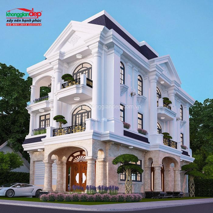 Khoác lên mình chiếc áo ngoại thất màu trắng thuần khiết cùng phong cách tân cổ điển không cầu kỳ, rườm rà, căn biệt thự vẫn nội bật giữa khu dân cư tại quận Gò Vấp. Vẻ đẹp thanh lịch và sang trọng bên ngoài của căn biệt thự toát ra từ sự tối giản và cân đối trong từng đường nét thiết kế.