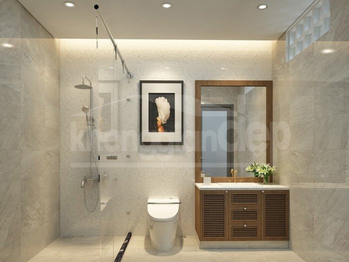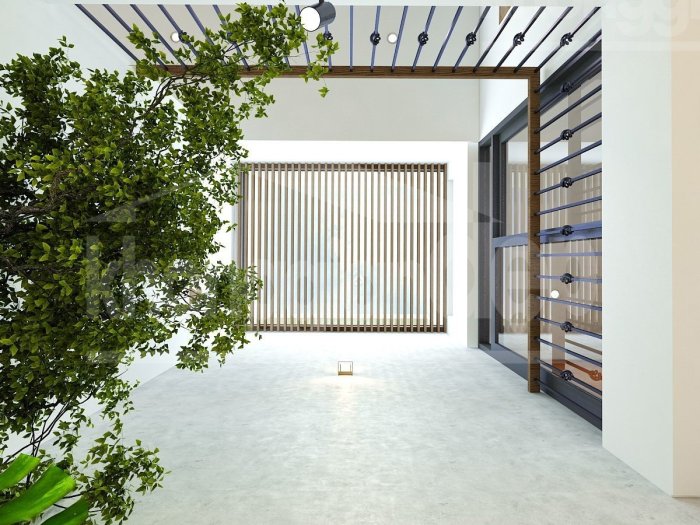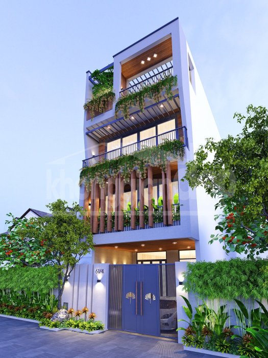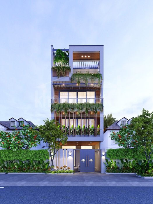 Mặt tiền căn nhà được thiết kế với những khung cửa kính rộng lớn trở thành 1 bức tường trong suốt, hay có thể gọi là “1 ranh giới tinh tế” giữa không gian sống của gia chủ & môi trường bên ngoài, vừa có tác dụng lấy nguồn sáng tự nhiên vào trong ngôi nhà, vừa đem lại giá trị thẩm mỹ cao. Bên cạnh đó những “ban công” cây xanh & dàn hoa còn khiến cho mái ấm này trở nên lung linh & thi vị. Ngoài ra cây xanh còn giảm thiểu bụi bẩn từ bên ngoài, đem đến nguồn khí tươi mát vào bên trong căn nhà.