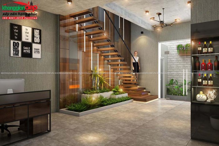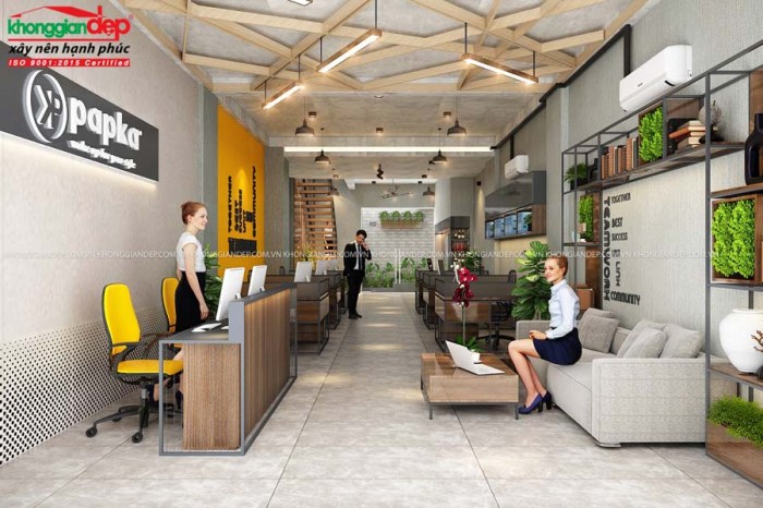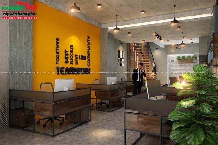 – Tầng Trệt, Lầu 1: Kinh doanh Văn phòng. Với chất liệu từ gỗ tự nhiên kết hợp với những mảng xanh đã tạo nên một không gian làm việc thoải mái và nhẹ nhàng, yếu tố này sẽ tác động đến năng suất làm việc cực kỳ tốt. Các phòng ban được ngăn cách bằng những tấm kính trong suốt, để đảm bảo một không gian mở, thoáng đãng nhưng vẫn được sự riêng tư cho từng khu vực.