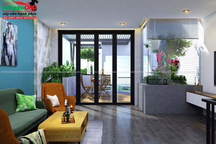 – Lầu 2, Lầu 3 (Sân thượng): Nơi sinh hoạt của gia đình. Nội thất hiện đại, đa dụng, đảm bảo đầy đủ tiện nghi cho sinh hoạt của các thành viên trong gia đình. Bên cạnh đó, các KTS KHÔNG GIAN ĐẸP đã khéo léo kết hợp những gam màu hài hoà với nhau, tạo ra những không gian đặc sắc và thú vị, giảm bớt sự nhàm chán & có phần đơn giản mà kiến trúc hiện đại mang lại.
