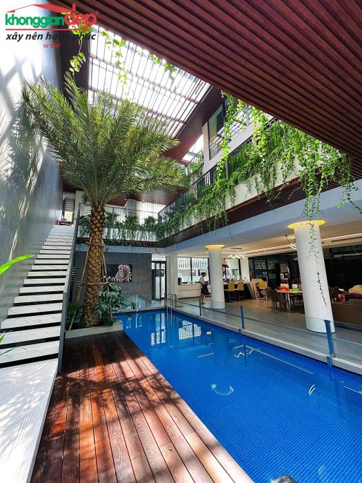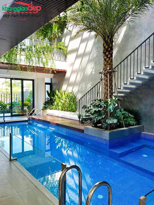 Hồ Bơi Trong Nhà với cây xanh nhiệt đới