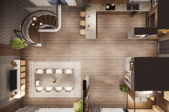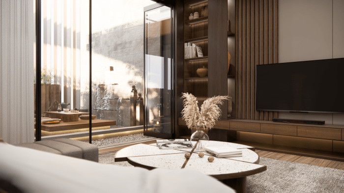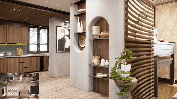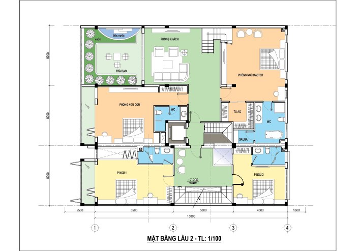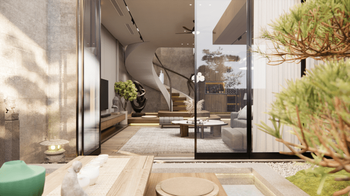 Không Gian Lầu 2, Lầu được bố trí cho gia đình như một PenHouse thu nhỏ với sự nhấn mạnh khu vực Vườn Thiền giành riêng cho gia chủ