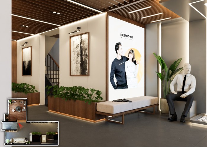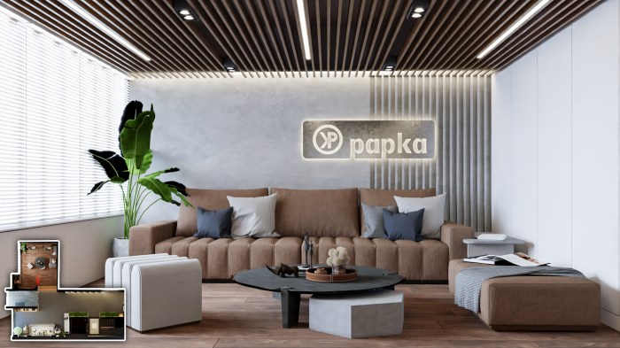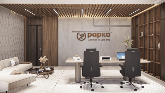 Không Gian Showroom và khu vực Văn Phòng công ty được thiết kế nhấn mạnh các yếu tố Thương Hiệu Kinh Doanh