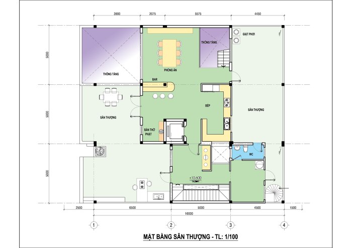 Khu vực Phòng ăn kết hợp với thông tầng và sân vườn