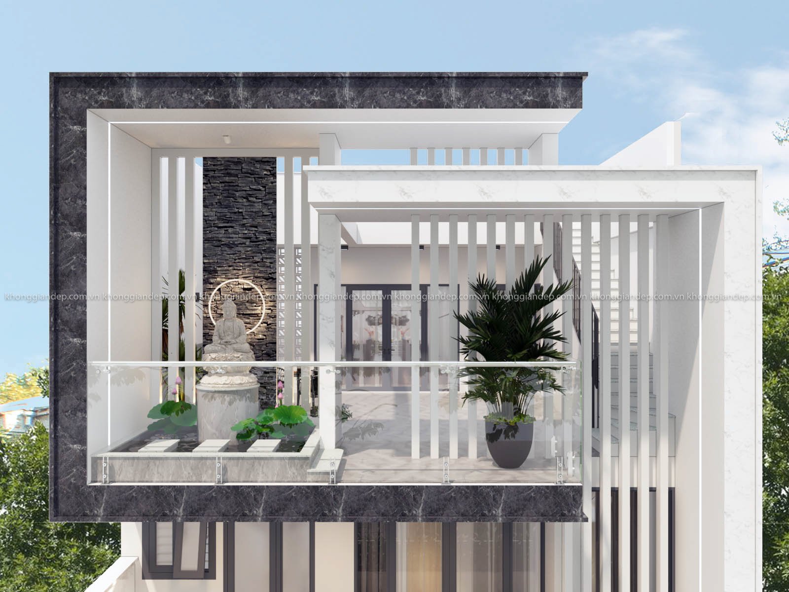Nhà phố Hiện Đại với Không Gian vườn Thiền